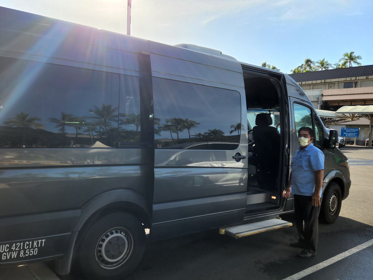 他の利用客の組と同乗でしたが、大きなシャトルで、感染症対策に心配なく安心して利用できました。ピックアップ予定時間よりも5分前には早く到着され、待つような不安も感じることなく、スムーズに空港へ向かうことができました。出発便の3時間前のピックアップだったので十分な時間ができ、ホノルル空港を飛び立つまで最後の余韻を十分に楽しむことができました。