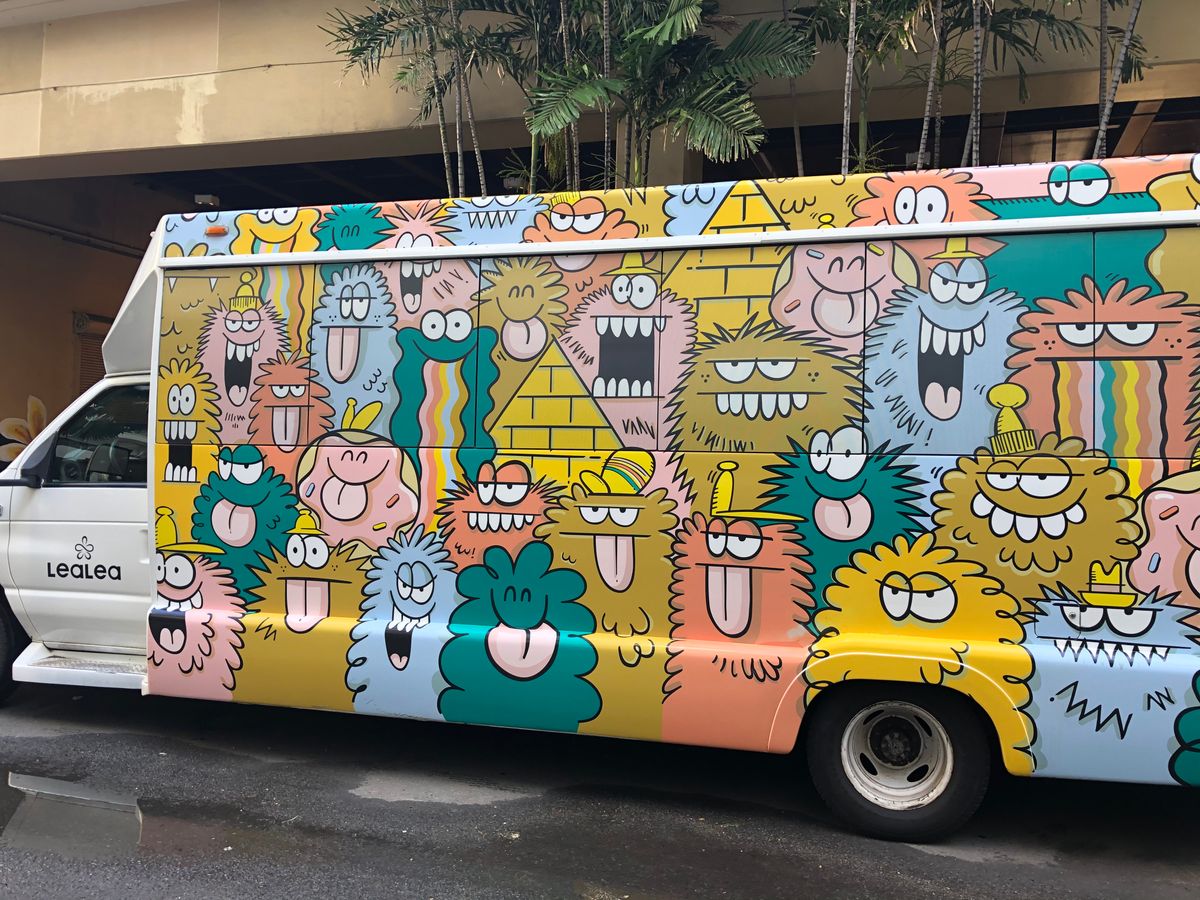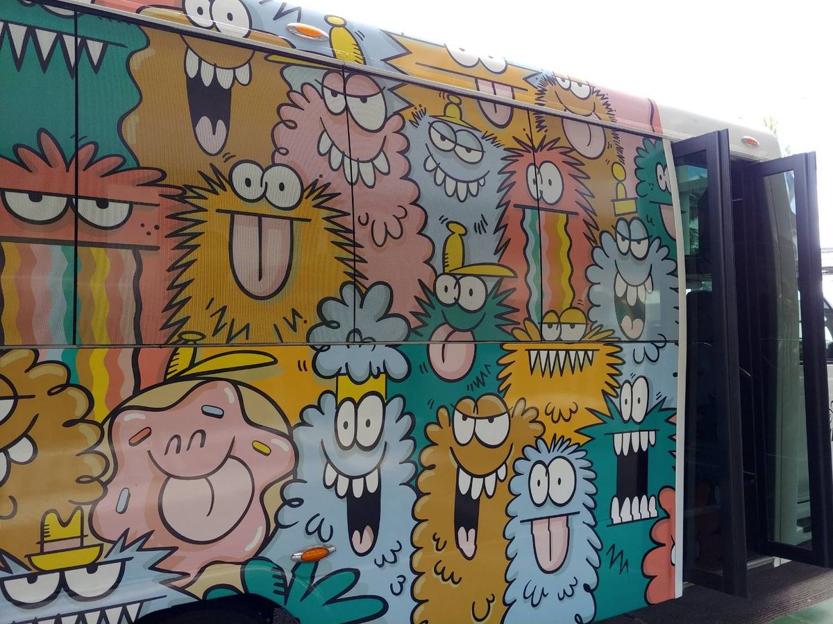 ひとりだったので、こちらのシャトルを予約。団体出口から出たらスタッフがいました。2階に案内されて30分近く待ち、やっと乗るシャトルに案内されました。有名なウォールアートのラッピングバスでした。