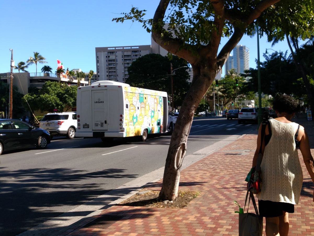 乗り場が分からなくて少しウロウロしましたが、乗ったら快適。ワイキキのホテルを回っていくので、さっそく観光もできました。運転手さんも明るい人で、楽しめました。