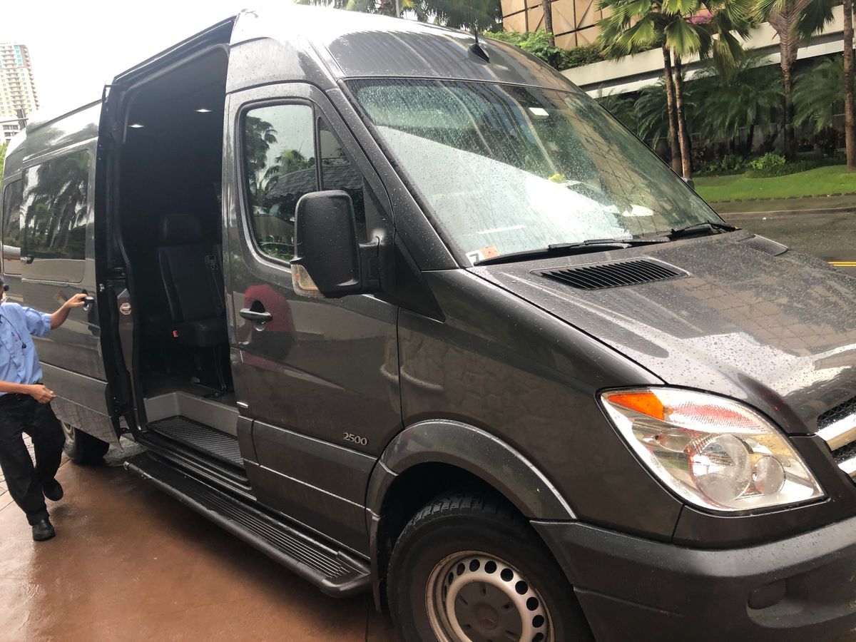 ここ数年は結構な確率でリムジンでのお出迎えだったのですが、今回はバンタイプで、これはこれで乗り降りがとても楽でした。