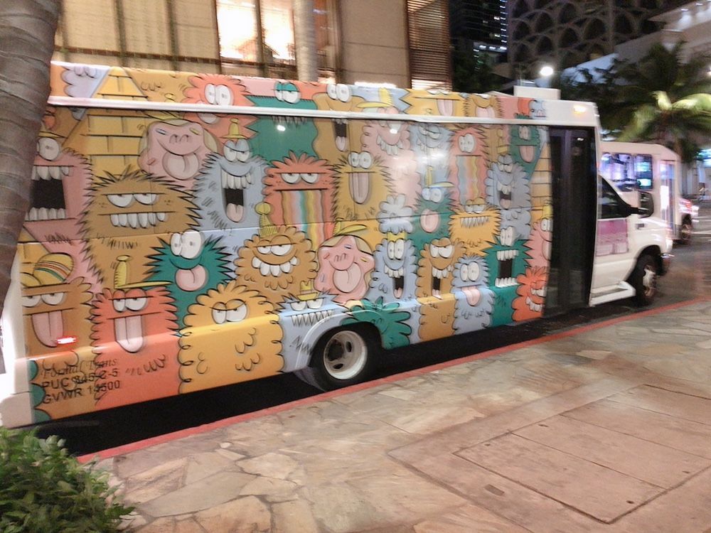 ハワイ旅行の度毎回利用させていただいています。ハワイ旅行中何度かカカアコアートのモンスターの壁画のバスが運行しているのを見かけていて可愛いと思っていたところそのモンスターアートの送迎の車が迎えに来ていただけてまだ帰りたくない、ハワイから離れる寂しい思いで下がったテンションが少し上がりました。送迎の車の中では疲れからすぐ寝てしまいましたがまた来年のハワイ旅行でもぜひ利用させていただきたいと思います。