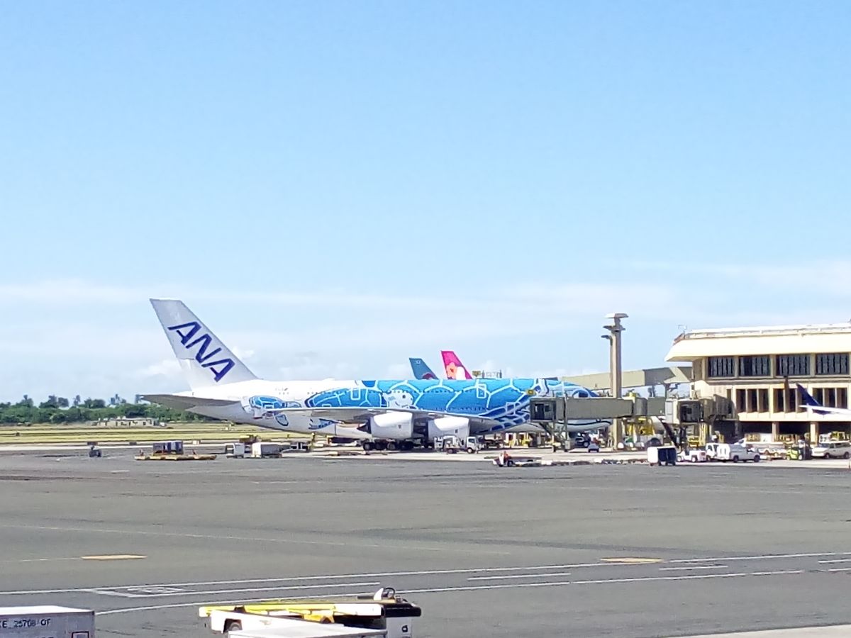 私のホテルは1箇所目だったのに20分くらい遅れてきました。5箇所ホテルを回って空港へ。それでも2時間半くらい前には到着しました。ホノルル空港は手荷物検査がとにかく並ぶので余裕を持って到着できてよかったです。