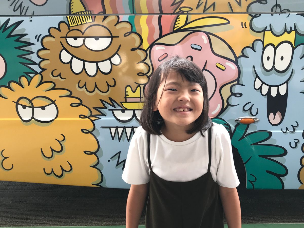 子どもいたせいか、貸切でなんとウォールアートのかわいいバス。