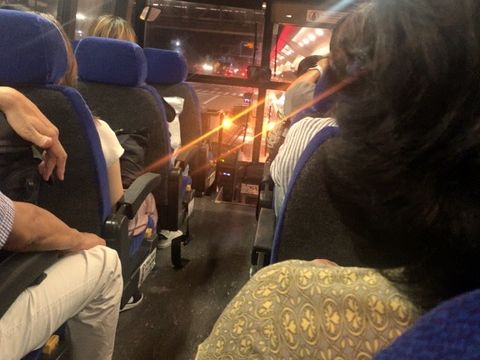 飛行機が遅れましたが、ほぼ待ち時間もなく出発!走り出してしばらくすると車内で大きな音が鳴り白い煙が室内に充満。すぐにエアコンの故障とわかる程の室内温度上昇!それでもひた走り泊まる予定のホテルから非常に離れたところで降ろされる。遠いと指摘したら、間違ってたとの事で近くまで。ま、こんな感じなのかな、と。