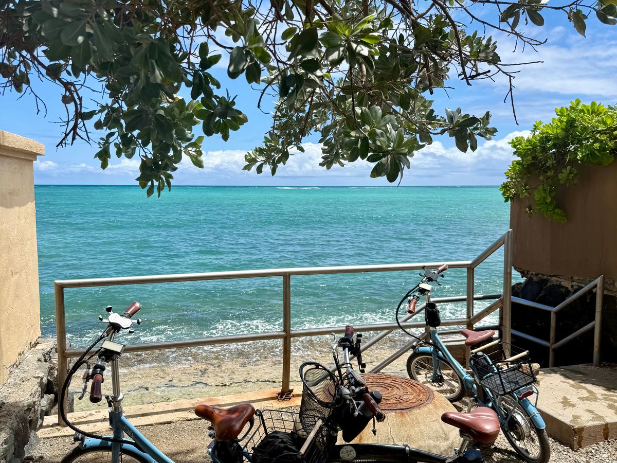ラニカイピルボックス、ラニカイビーチ、カイルアビーチに行きました。坂も沢山ありますが、電動自転車なので快適でした。9歳娘は子供用サイズ?電動自転車を借りて、始め慣れるまで練習してから出発しました。