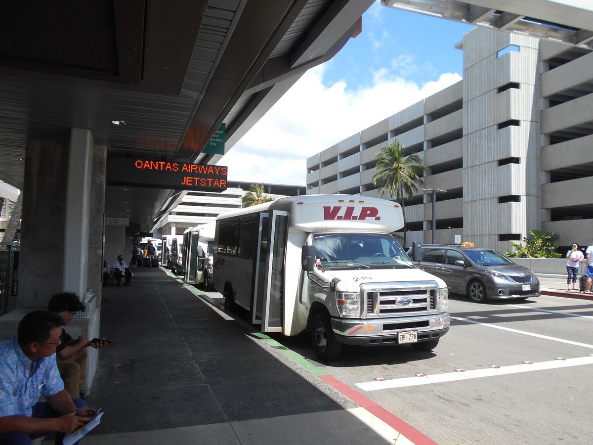 ホノルル空港へ行くのに何組か乗車してましたが、私達はホノルル空港からハワイ島のコナ空港へ行く予定でしたので、チェックインカウンターの一番近い場所まで案内して頂きました。