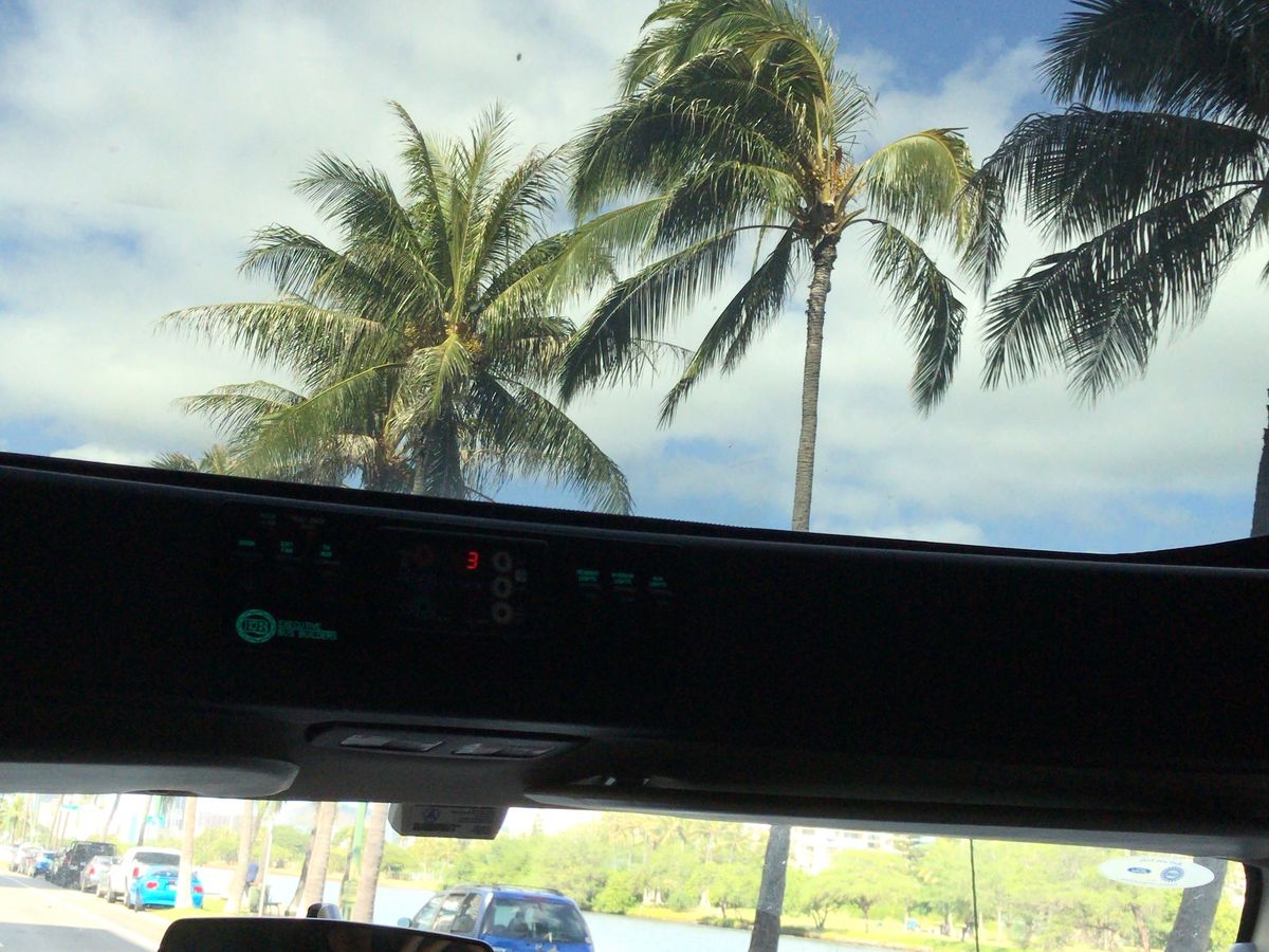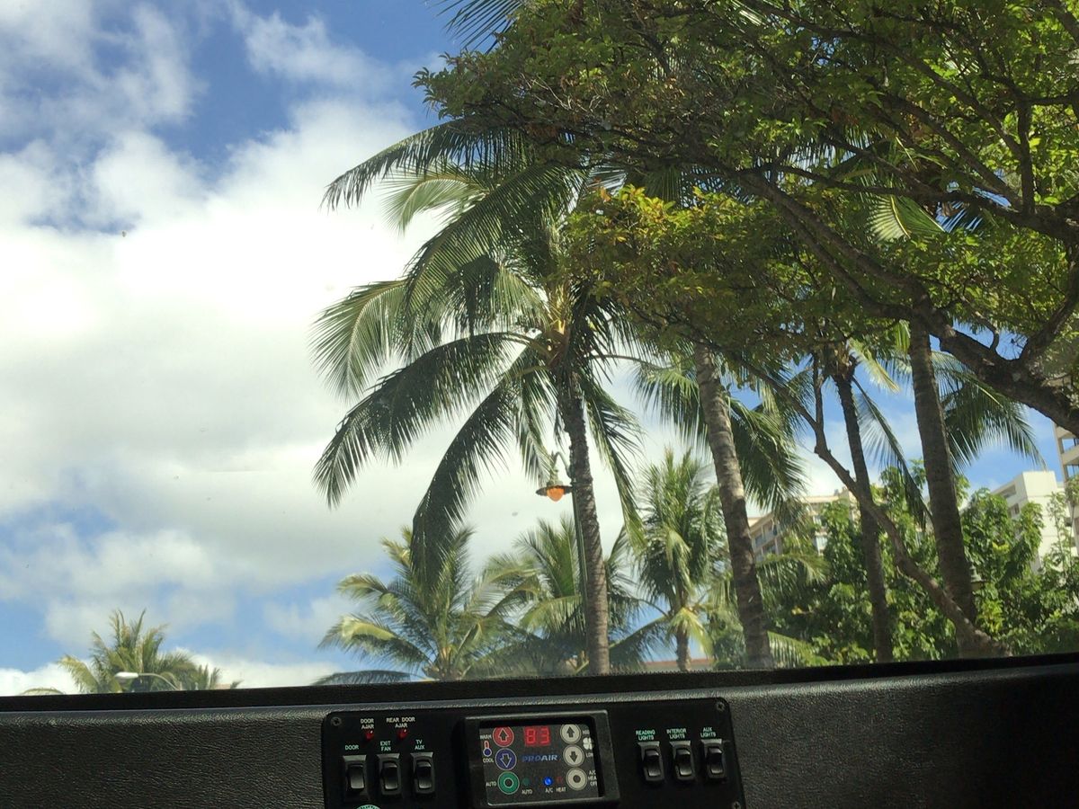 車窓の景色から、今朝のハワイの天気や様子を楽しんでいます。