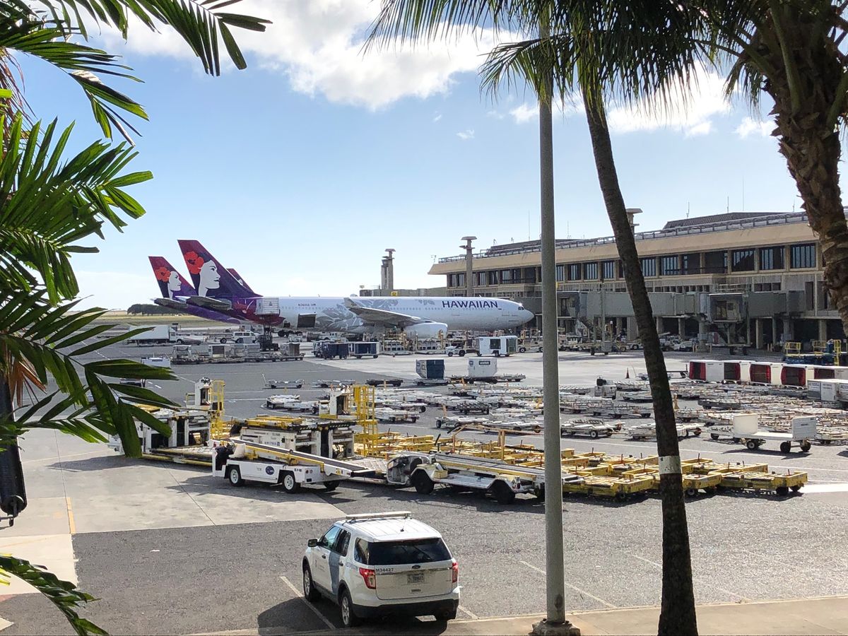 ホノルルに付いて受け付けを済ませた後、乗り場の案内が不親切で、グルグル歩き回ってしまった。