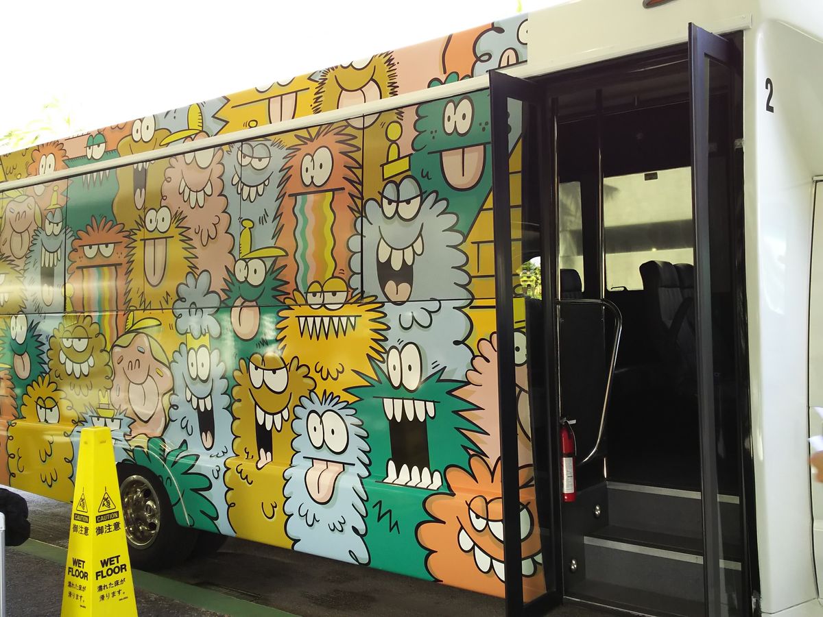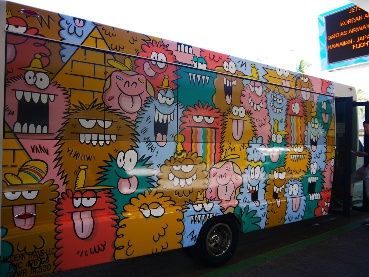 カカアコのウォールアートラッピングバスで乗る前からテンション上がります♪