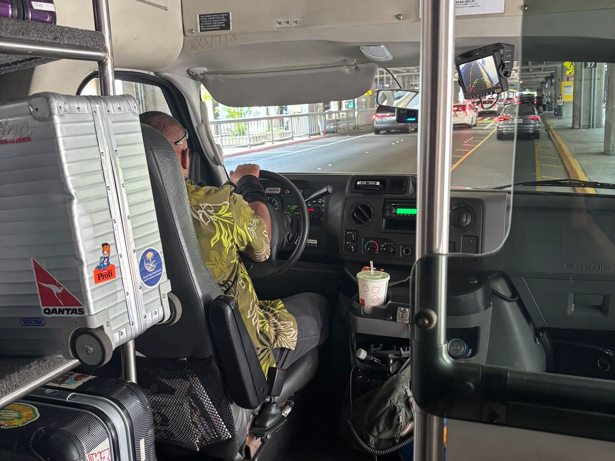 相乗りの中型バスでの利用になります。運転手の方は荷物の取扱いが丁寧で、運転もゆったりとした運転でしたので、とても安心して乗車出来ました。(ハワイの人は車間距離が短く、頻繁に車線変更を繰り返すので、ヒヤヒヤしていました。)