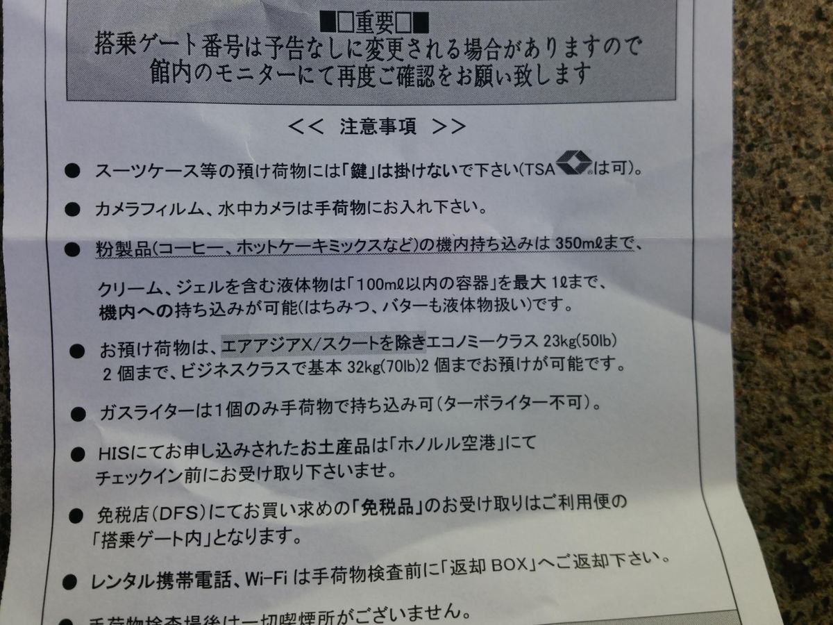 この紙に、便名、ゲート番号、搭乗予定時刻まで記載されており、