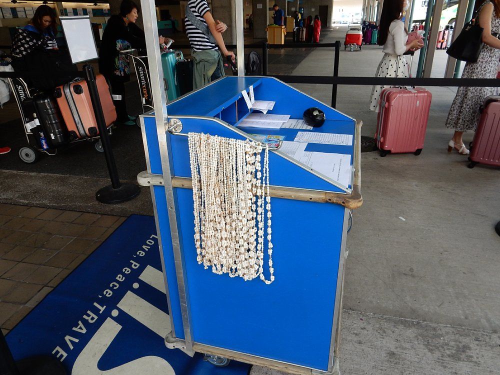レイでは無かったですが、当到着時に小さな貝殻を連ねた首飾りのプレゼントがあり、少し気分が上がりました。