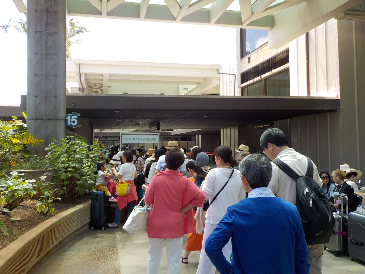 飛行機も満席でしたがダニエル・K・イノウエ空港も人で一杯。空港からホテルまでのシャトルバスは昨年も利用していたので乗車場所まで直行しました。番号を呼ばれバスまで案内してくれましたが荷物を大切に扱ってくれたので良かったです。席もタクシーと変わらない位の広さで快適だし、ホテルロビー前で荷物を丁寧に下ろしてくれ気持ちの良いハワイの旅がスタートできました。
