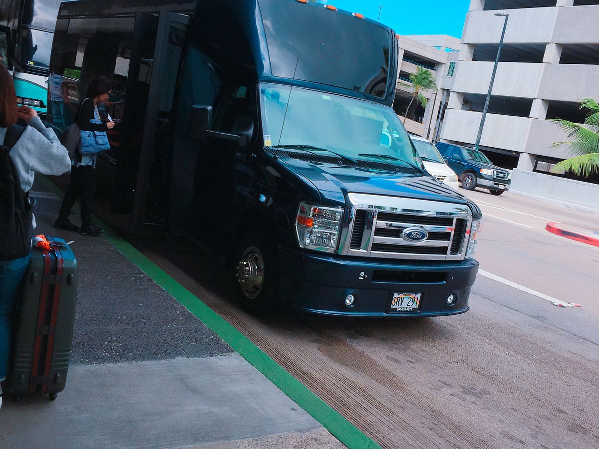 座り心地がいいイスで専用のwifiも使えるのでいいと思います。ホテルまで送ってくれるので初めてハワイに行く人にオススメです。