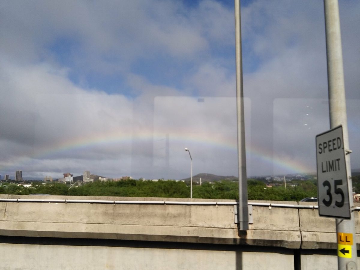 乗り心地も良いバスで、虹がウェルカムしてくれました!