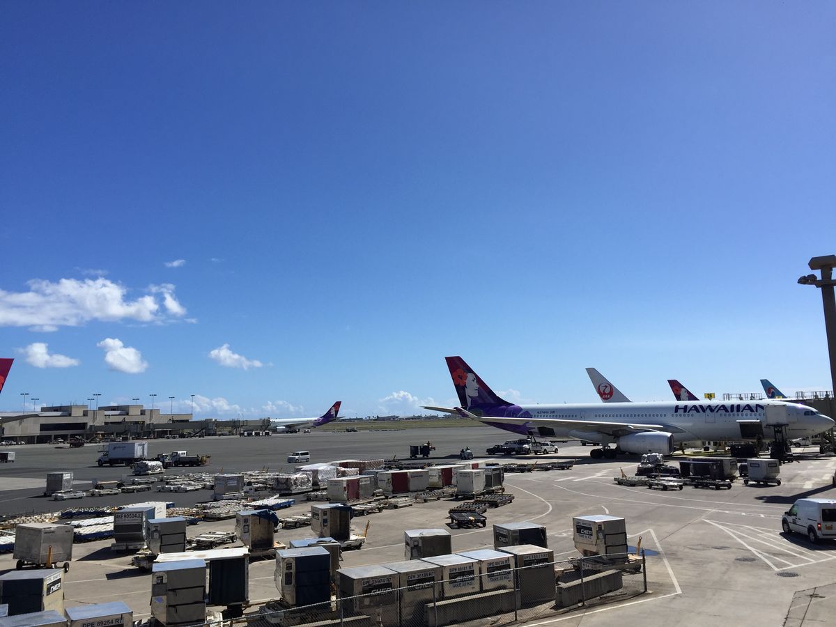 ホノルル空港について、乗り場にいろんな会社があり、長蛇でどの列に並んで良いか分からず