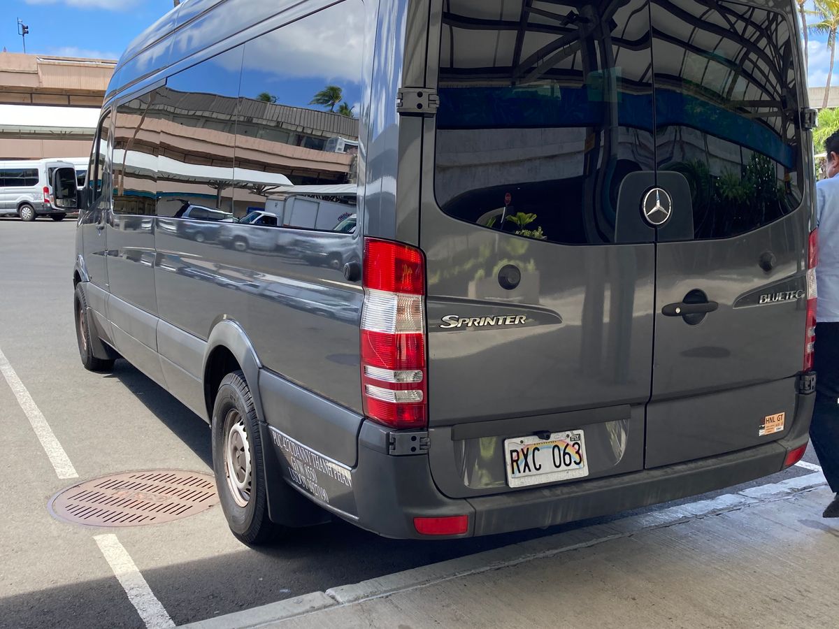 ホノルル空港到着後、ホテル行きのシャトルに乗りました。