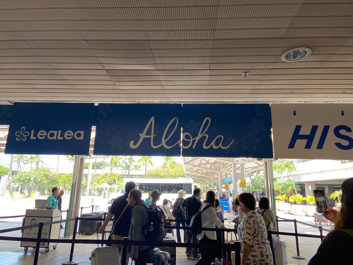 ハワイアン航空の国内線と国際線のチェックインカウンターを間違えて降車いただいてしまったとのこと、