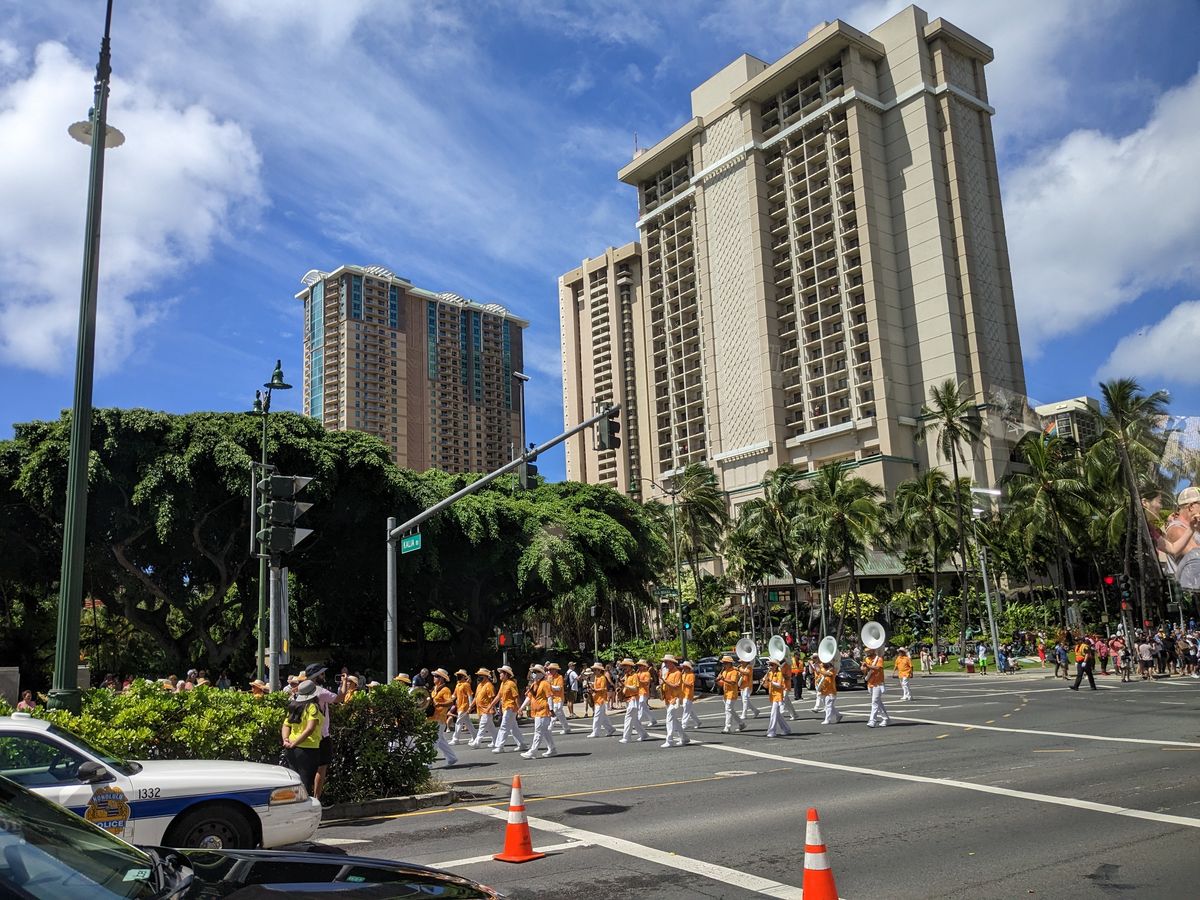 今回到着した日がちょうど祝日でワイキキでパレードが行われていて通行止めがあり、HGVの降車エリアまでいけず、少し手前で降りました。
