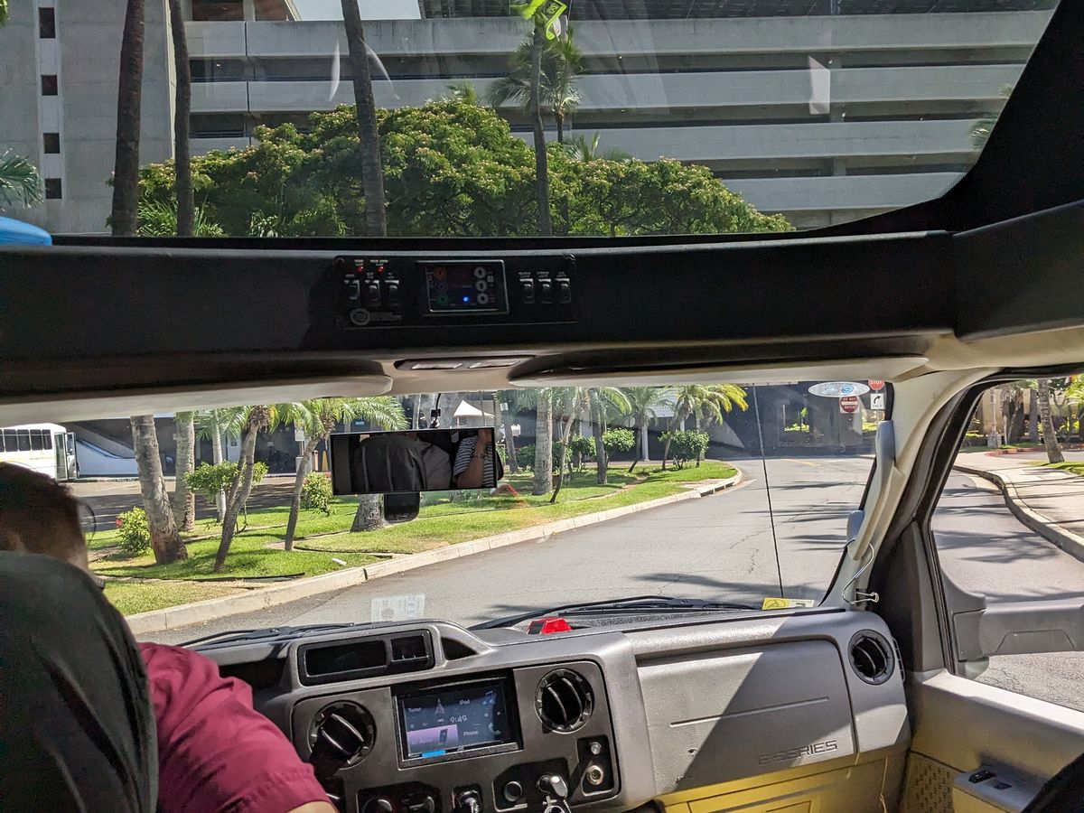 運転手がスマホを見ながら運転していたためとても不安でした。ハワイでは普通なのか?