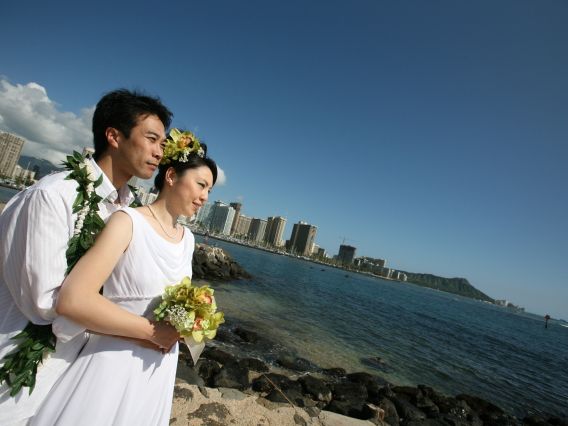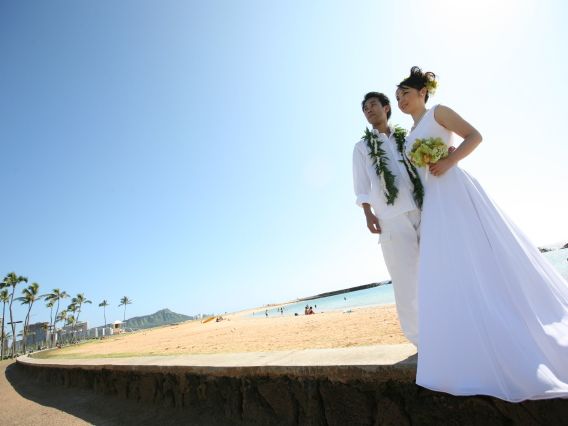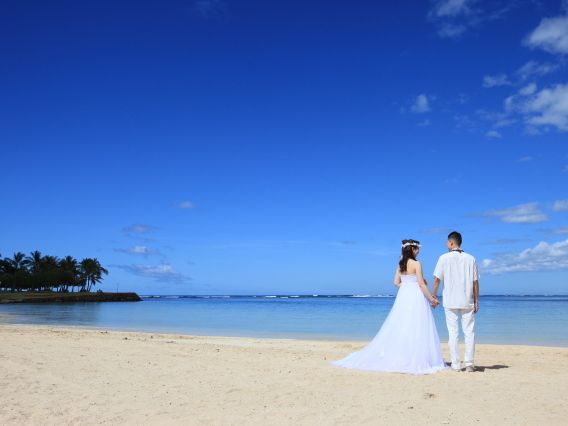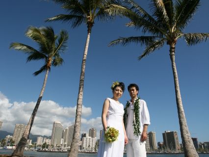 新婚旅行で利用させていただきました。当日はあいにくの小雨でしたが、スタッフさんとカメラマンさんの心優しいきづかいもあり、アロハタワーでの撮影に変更させていただきました。写真も綺麗に写していただき本当にいい思い出になりました。