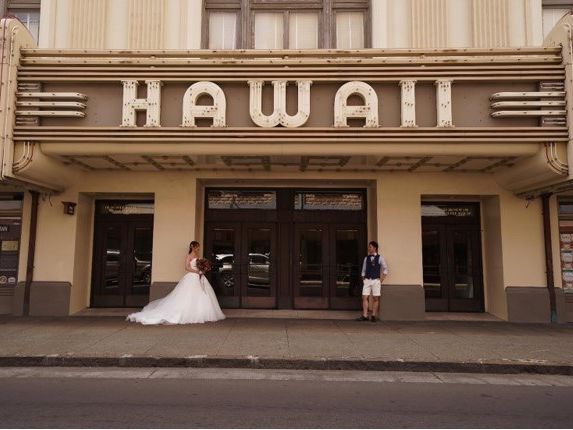 撮影も最初は照れと緊張しましたが、表情や向きなど教えていただき楽しく撮影できました、ダウンタウンのハワイシアター以外のところでもたくさん撮っていただきました。