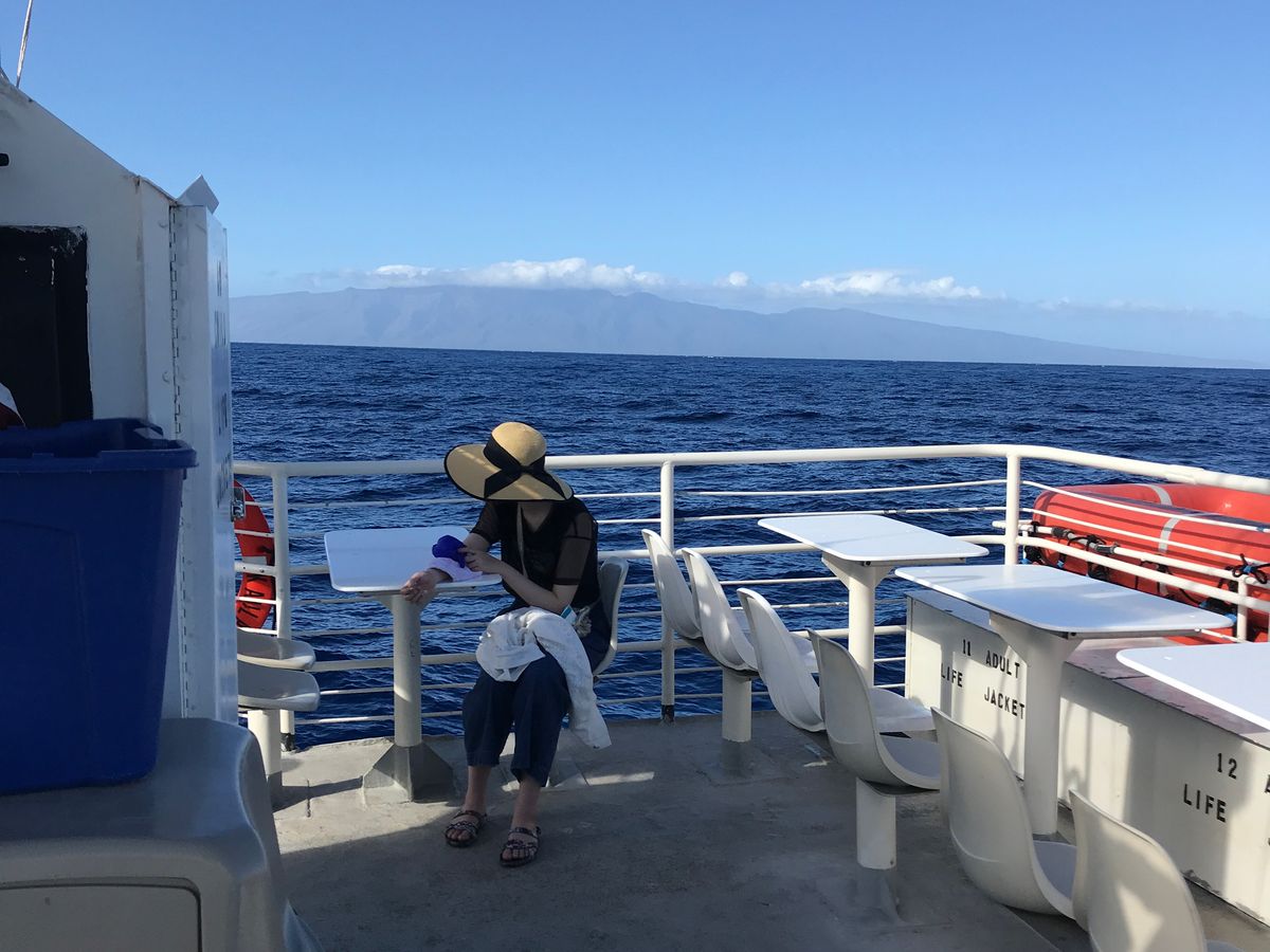 船の関係で、少々待ち時間が長かったのですが、ラハイナ港でのんびりと海を眺めていると全く気になりません。目の前にはラナイ島とモロカイ島が見えます。