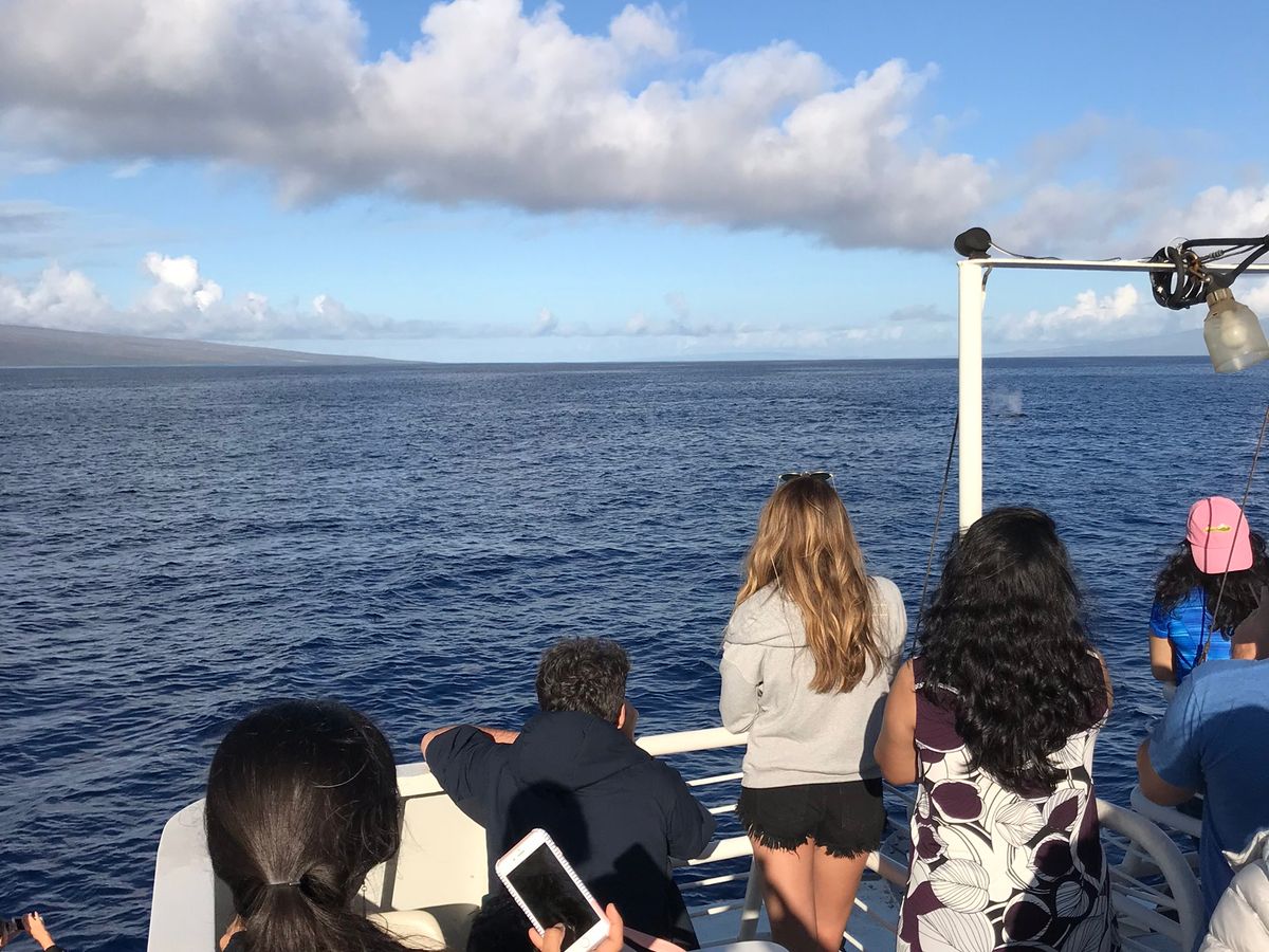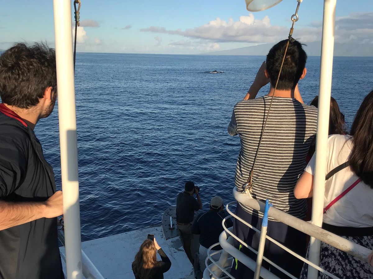 クジラはほぼ90%以上の確率で見れるそうです。それ以上に良かったのは船からのハワイ島の眺め。綺麗で雄大で最高でした。船の設備も食事飲み物トイレ付きと至れりつくせり。