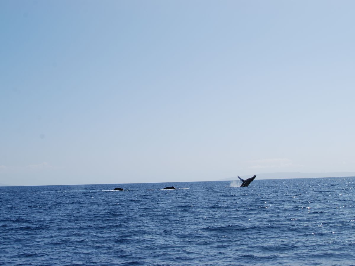 When my husbund and I went to this trip I thought we will see one or two whales very far away. But thanks Dave and his wonderful crew we saw so many things! We saw dolphins, turtles, fishes and whales of course. There were several points where we saw them. One of the whales jumped out the water many times and it was amasing.