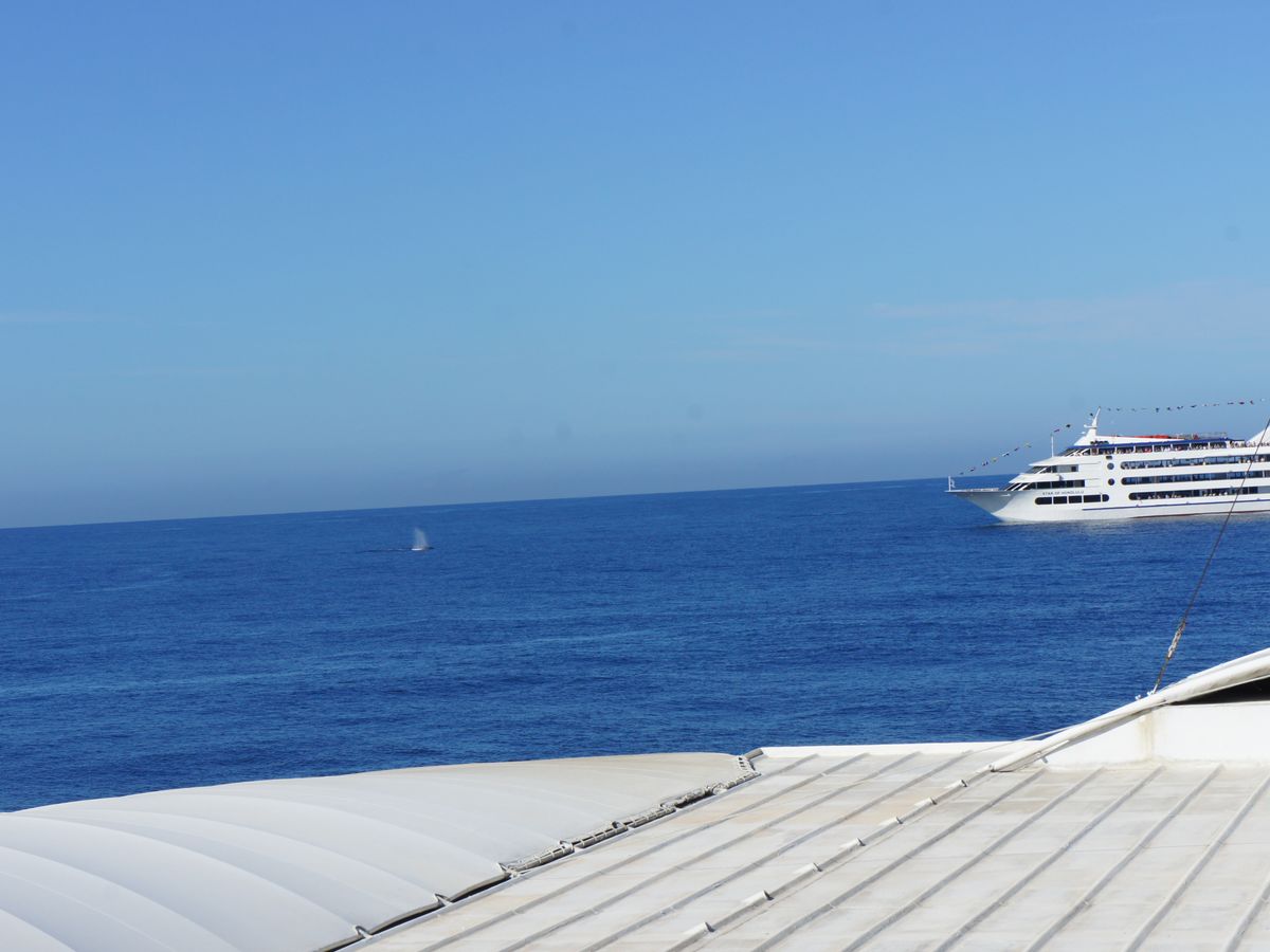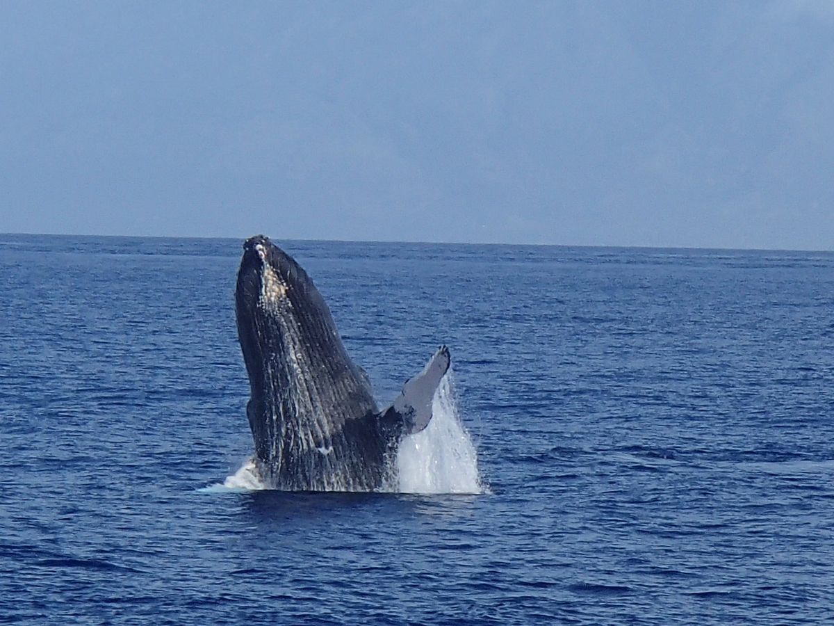 クジラは何度も海面まで上昇し潮吹きし、潜る時には大きな尾ビレが並んで見えました。出発してすぐにウミガメを、帰りにはたくさんのトビウオを見ることができました。ナバテック号に乗って良かったです。