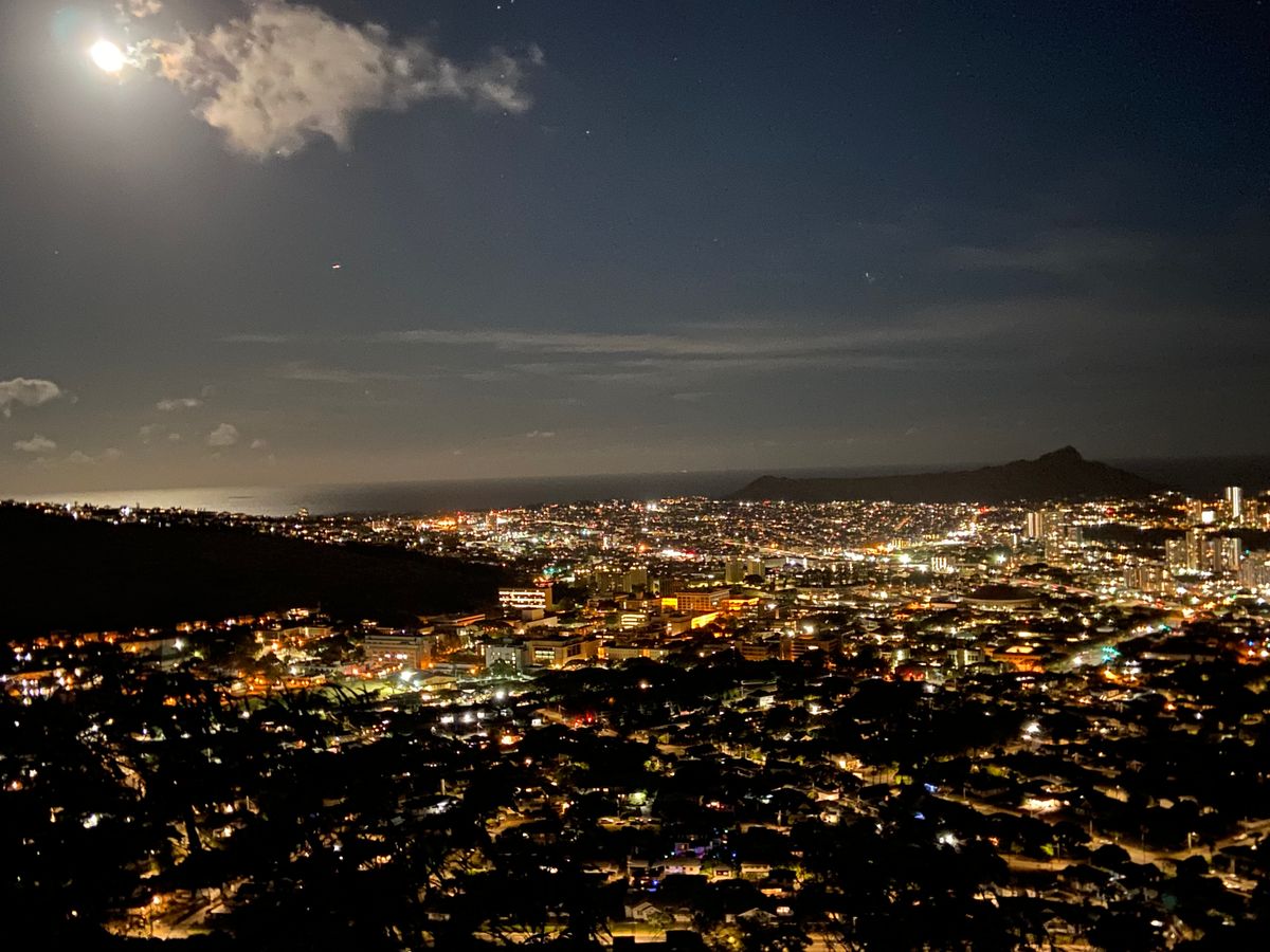ダイヤモンドヘッドと月も見えて天気も良くて最高の夜景でした。
