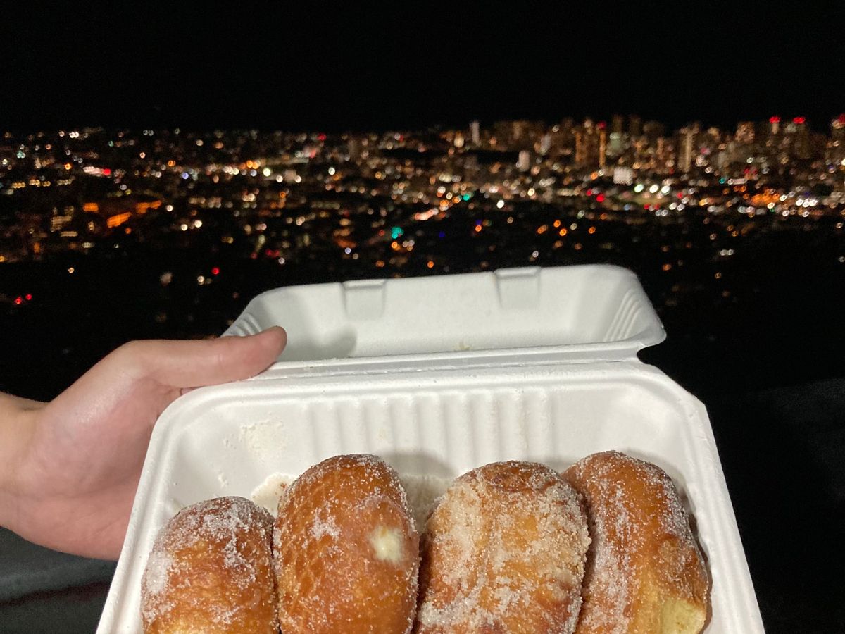 また予めガイドさんがレナーズのマラサダを買ってきてくれていたのですが、一緒に温かい紅茶も用意してくださっていて夜景を見ながら温まることもできました。心遣いが嬉しかったです。