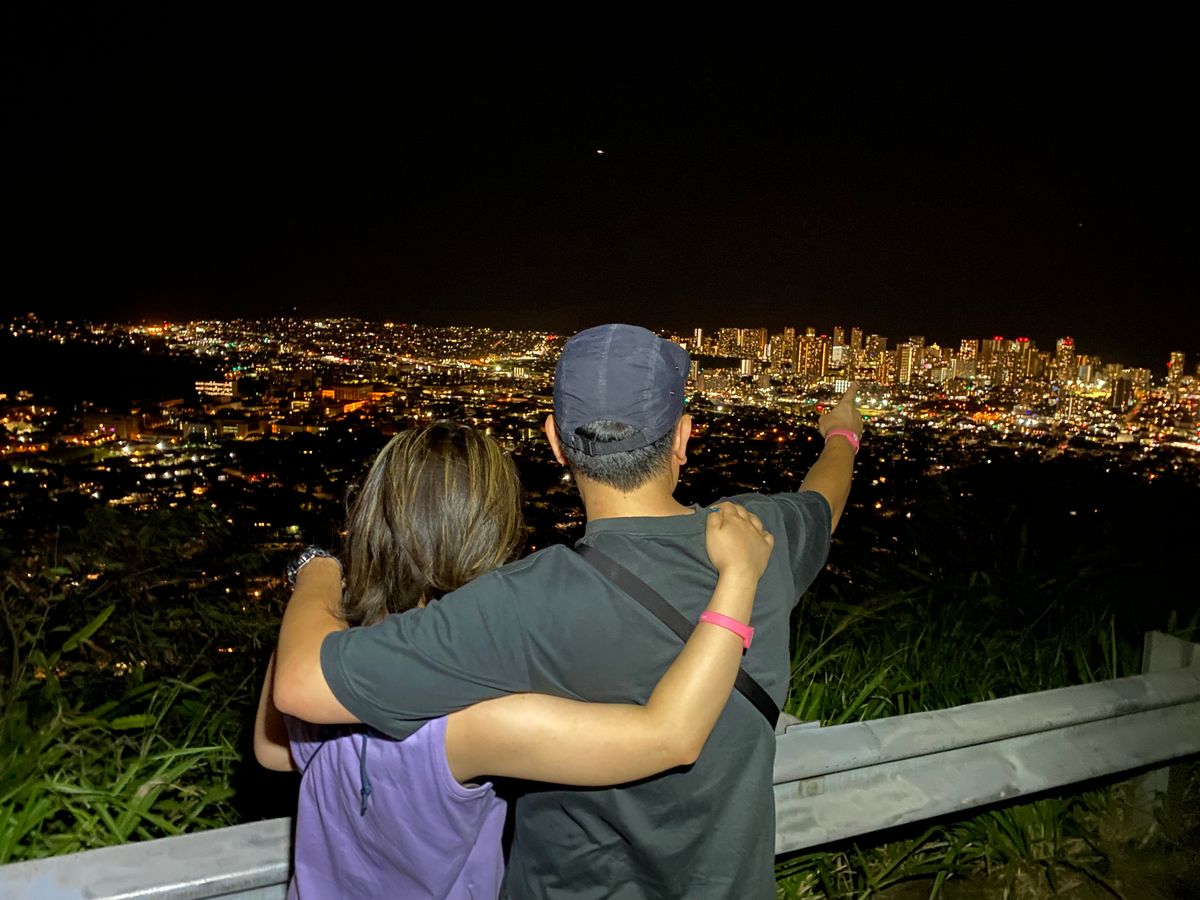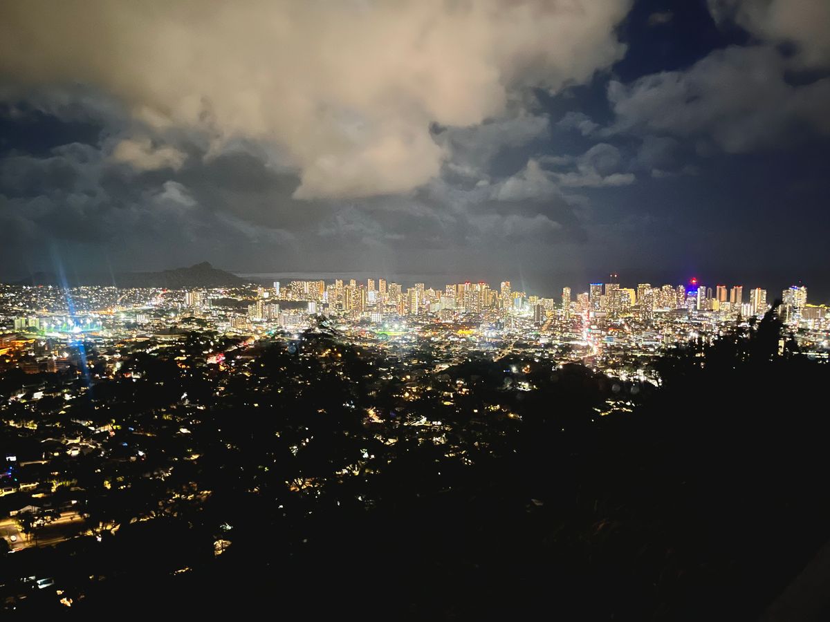 夜景は見たいけど、治安の悪いところということでツアーを頼みました。ガイドのタロさんはお得な買い物情報やうまい店など絶えることなくしゃべって楽しませてくれました。夜景ポイントでは、マラサダとお茶という白湯で(ティーバッグを入れ忘れるハプニング)終始楽しませてくれました。写真もひと家族ずつ丁寧に撮っていただき、短い時間でしたが楽しかったです。