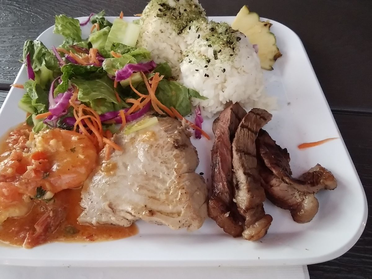 ガイドさんはとっても楽しく気さくな方でハワイのいろいろな楽しいお話を聞きながらまずはディナー。ハワイならではのローカルな優しい雰囲気のお店でプレートをいただきました。個人的にガーリックシュリンプとステーキがとっても美味しくウクレレの生演奏と波音を聴きながら心地のいい贅沢な時間を過ごさせていただきました。近くで寄っていただいた大型スーパーは楽しすぎて時間が足りないくらいお買