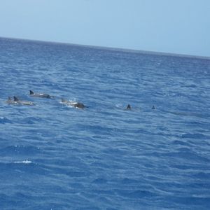 その後、船に戻ってようやくイルカに出会えました。本当にわざとやってるのかと思うほど10頭ほどのイルカが船の近くで一緒に「遊ぼう!遊ぼう!」と泳いで、とてもかわいかったです。