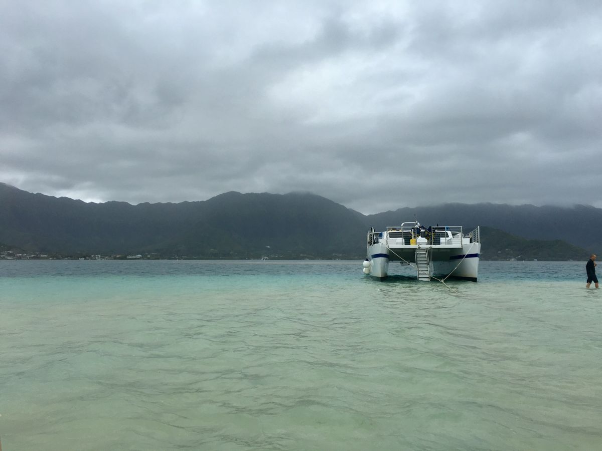 現地の潮位表を確認しなかったのに加え、送迎バスも事故渋滞にはまって港に到着するのが少し遅れたこともあって、イメージしたサンドバーで砂洲の上を歩くような潮位にはならず、砂洲は膝下に水没した状態でした。砂洲を散策したかったので少し残念。砂洲にあがりたければ潮位表を確認して予約するのが良いみたい。とは言え、BBQのハンバーガーは絶品。うまい。自分で作るケチャップとマヨのソースとハンバーグがばっちりgoodでこれだけでも食べる価値有り。子供ともども家族全員パテダブルのダブルバーガーにしてもらいました。天候が悪かったけどウミガメは3匹見られたし、透明度の高い海でのシュノーケリングは最高。子供(女×1、男×1、ともに小学生)ともどもシュノーケルだけでも充分楽しめました。天気が良かったら最高だったのにな~。