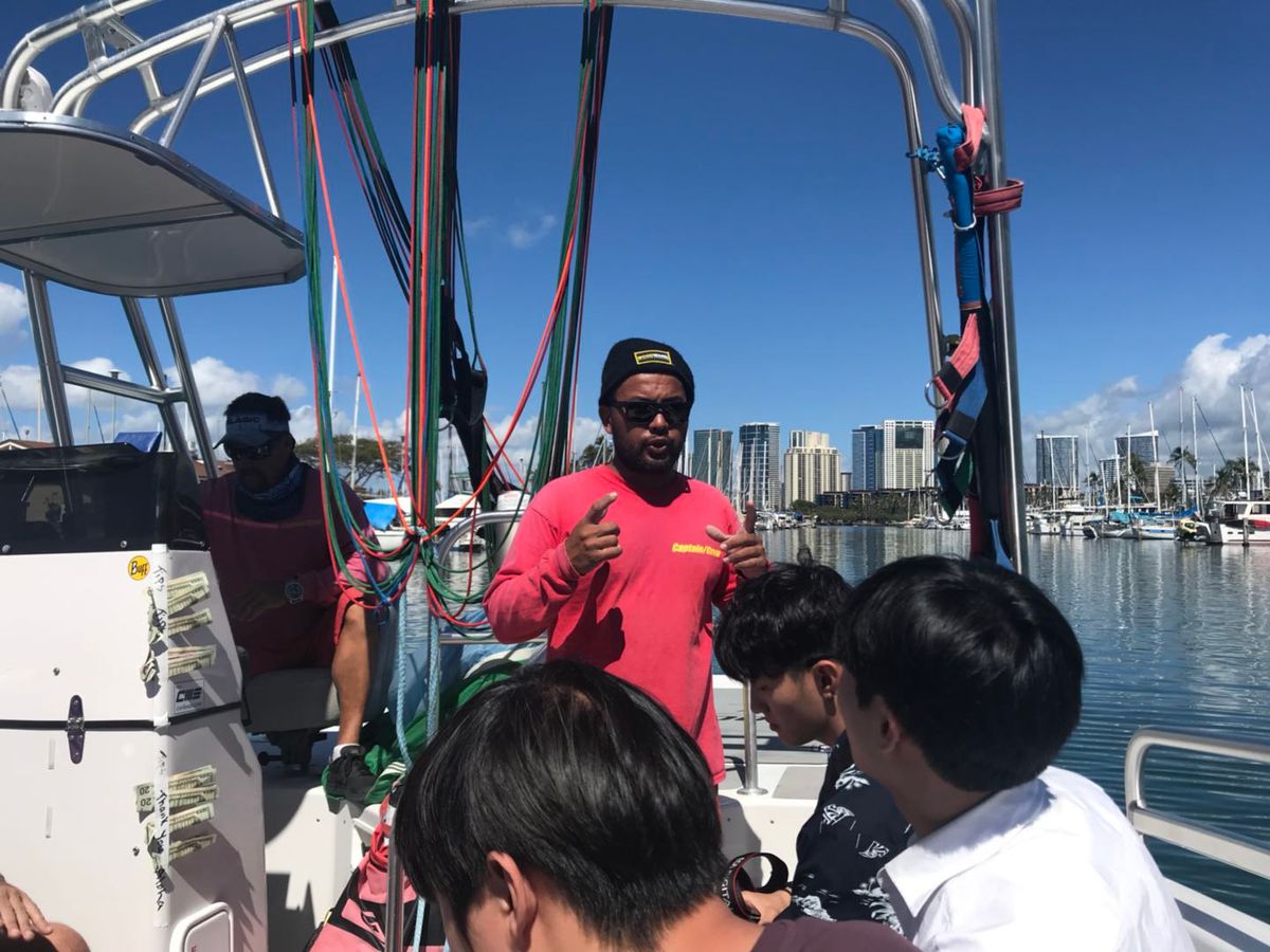 迎えのバスがピックアップより遅くてヒヤヒヤしましたが、送迎の方が外国の方でしたがとっても感じよく楽しい時間でした!ボートに乗るまでの時間も魚にエサをあげたりと楽しませてくれました!パラセイリングはもう最高です!朝から海の空でワイキキを眺められるなんて贅沢な時間でした!パラセイリング中、上がるのもゆっくりで急な揺れなどもなく安定飛行で恐怖心もなく景色をしっかり楽しめました!