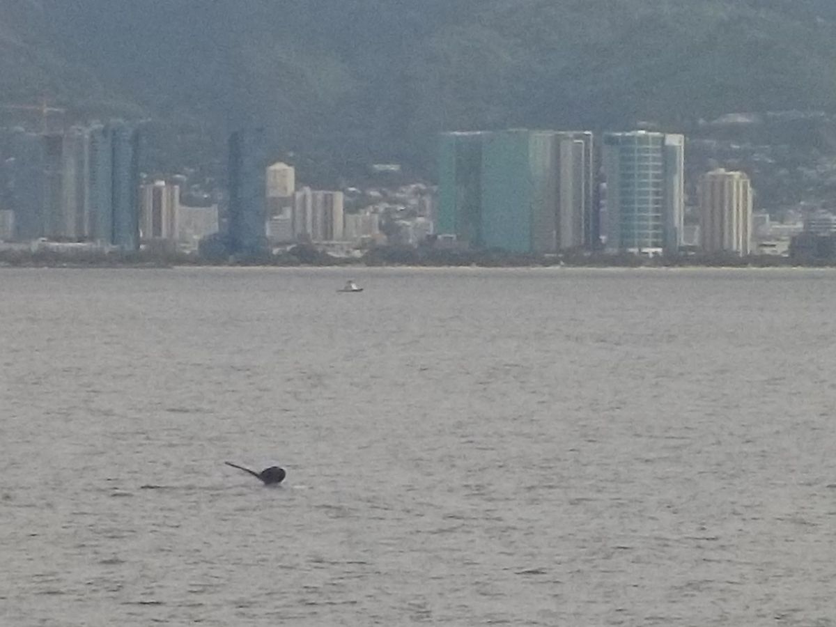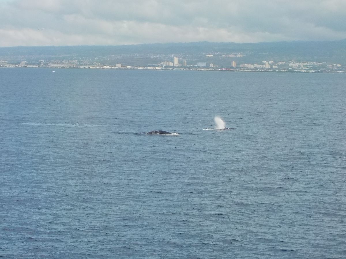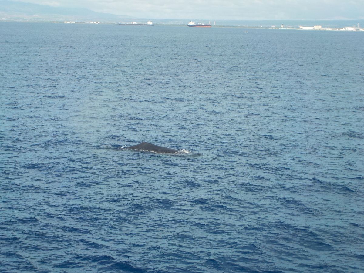 以前、カウアイ島でクルーズを利用したことがあったのですが、その際は遠くのほうに少し見えただけでした。それに比べると、船の近くで潮吹きや尾びれが少し見えたので、満足しましたが、同行の初めてクルーズを利用した人はクジラが上半身見えるくらいジャンプするところを見えると思ったらしく、残念がっていました。