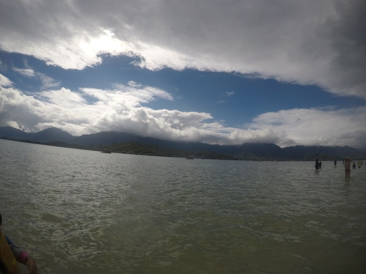 サンドバーまでの船の途中で雨が降り、