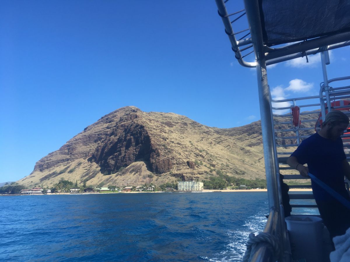 イルカと一緒に泳ぎたくて、イルカ大学に入学しました。バスに乗って、港までの間もスタッフが色んなお話をしてくれて楽しく過ごせました。船に乗ってイルカのいるところまで向かう間に、クジラも見えて感動しました!二度船から降り、イルカの大群をたくさん間近で見れて嬉しかったです。また海ガメも間近で見れたり、魚も見れて楽しかったです。SUPや滑り台やカヌーはおまけで少し出来るくらいで物足りなかったですが、すごく楽しかったです。またワイキキに来れたら、イルカ大学に入学します!!