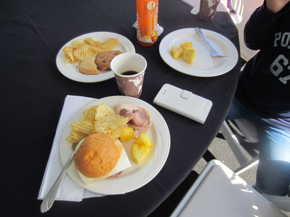 集合場所へ5分前にはついていましたが、すでに「マジェスティック号くじら」と書かれた看板を持った方が待っていました。時間になっても名前を呼ばれなかったので、「くじら」と書かれていることに気づいた時点で自分から声をかけました。行かれる方は看板を見たら声をかけてみてください。係の方のあとについて行くだけなので問題ありません。乗船するとブッフェのある階とオープンデッキの階がありましたが、オープンデッキの方が写真を撮りやすく風も気持ちよかったです。前日、地元の方が今年はまだクジラを見ていないと言っていたので不安でしたが、スタッフさんたちが全力で探してくれたおかげで、尾びれを2回と体を1回みることができました。クジラを探したり景色を楽しんだり、チップスやフルーツやバーガーも美味しかったです。船酔いをしてる方もいたので、酔い止めやシーバンドは役に立ったと思います。もっと大きくクジラを見たいのでまた参加したいです。