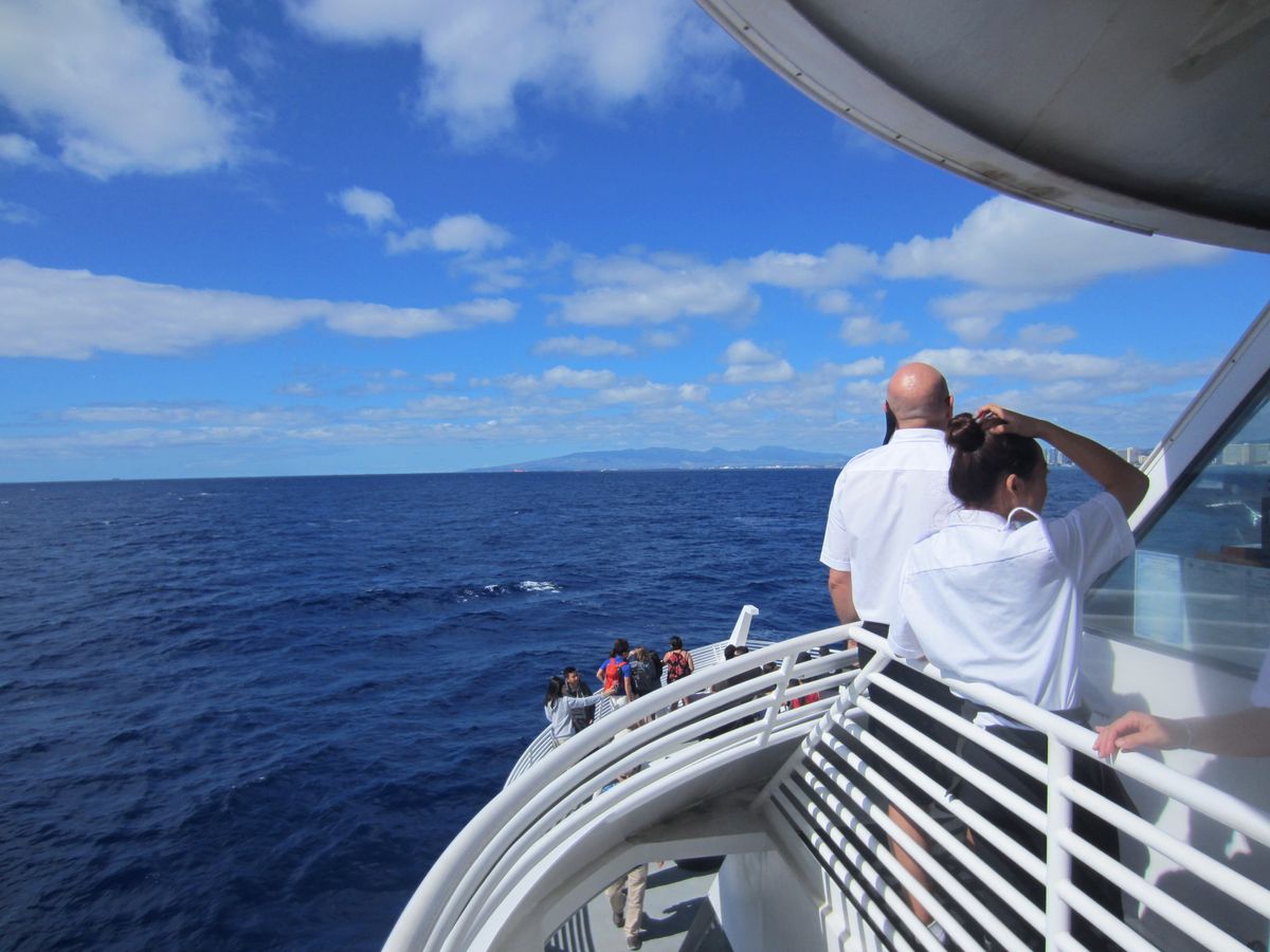 船体はプリンスオブホノルル号より少し小さめ。ダイヤモンドヘッド近郊に近づくと波が激しい。乗り物酔いする子供は辛いと思います。出航時間がゆっくりなので、安心します。ピックアップ場所もホテルに近い。クジラの親子を、見ることができました。今回、子供がスマホを落としたがちゃんと調べてもらい、見つけることができました。安心して参加できるツアーです。
