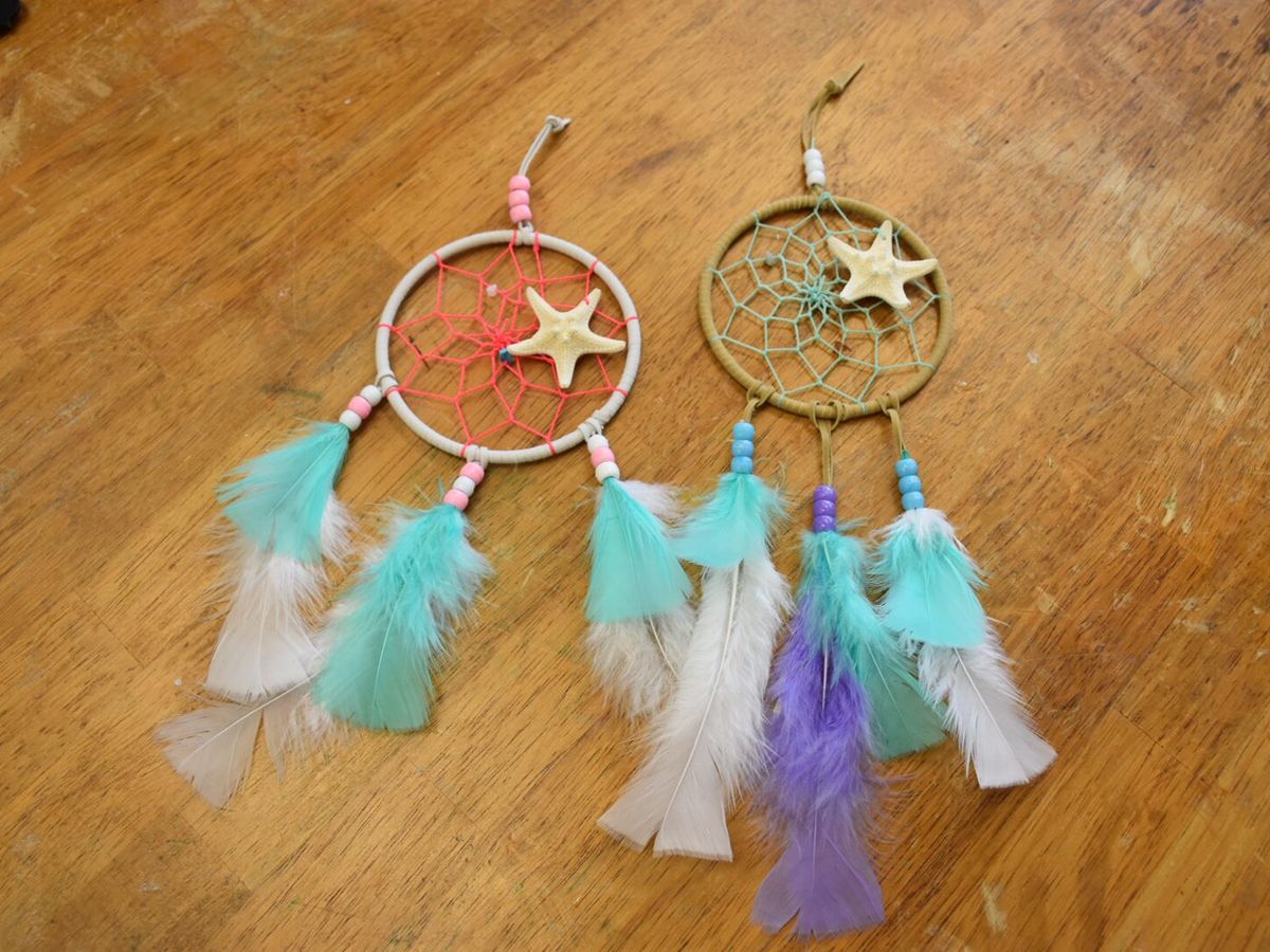 席について最初に、ドリームキャッチャーの枠と糸を数種類の色から選びます。