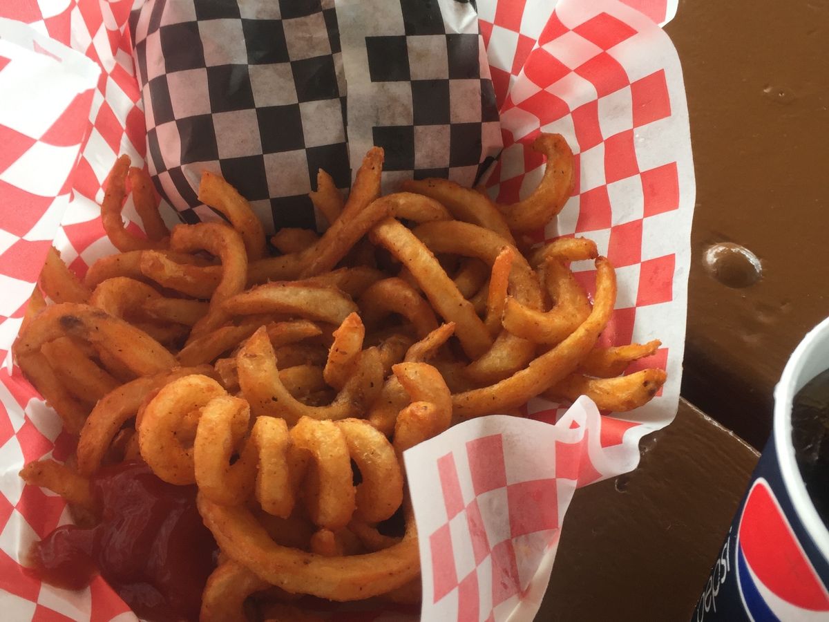 いくつか、スライダーに乗った後に昼食。ハンバーガーとポテトのセット$10.35(税込)味は普通だと思います。