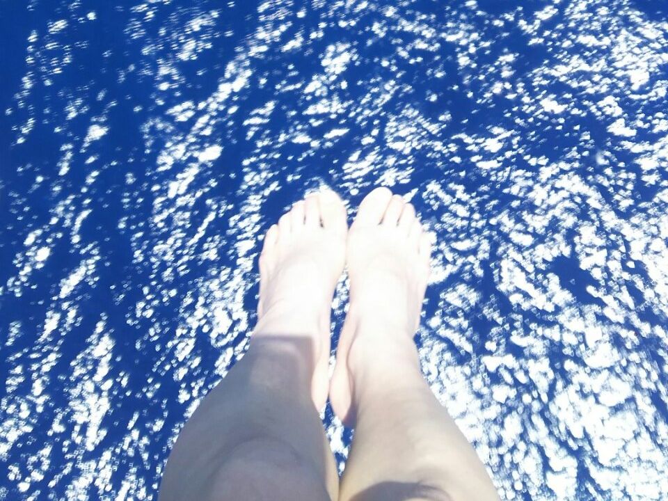 まずは身体慣らしで波のある流れるプールへ行き、浮き輪でぷかぷか浮きながら段々と足が付かない深