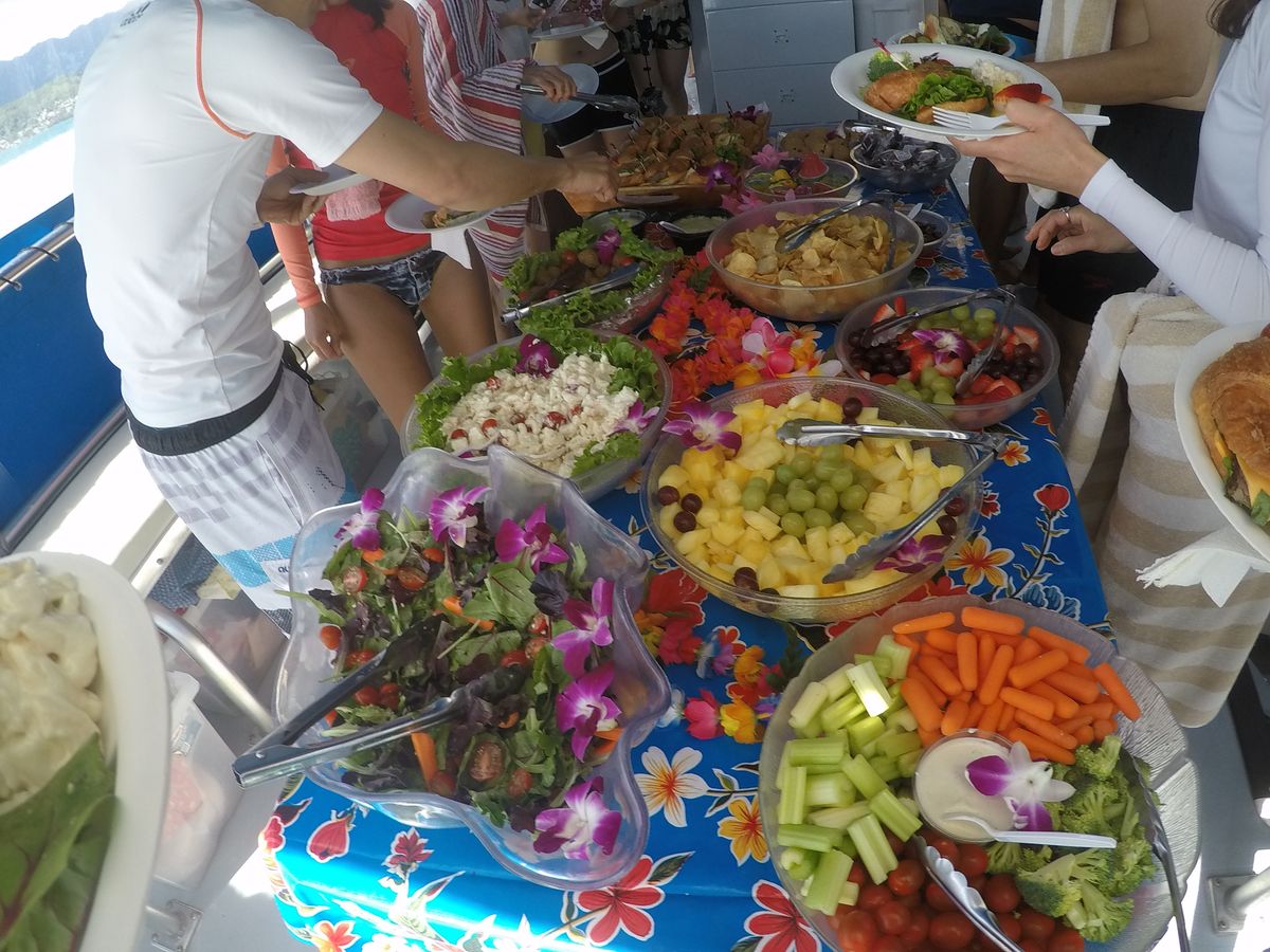40代の夫婦で参加しました。行きのバスでのガイドさんの片言日本語ジョークに大笑いしながらあっという間に港に到着。二隻の船に分かれる際、日本人のみの船とインターナショナル船に希望を募ってくれました。私たちはせっかくだからとインターナショナル船へ。とは言え案内してくれた女性は日本人だったので安心でした。BBQランチは口コミ通り本当に美味しかった!!食後はバスでガイドをしてくれた男性がギター片手に美声を披露してくれました。シュノーケリング中にウミガメに遭遇することができたラッキーな人もいましたよ。私たちは船上からしか見えませんでしたが大満足のツアーでした。