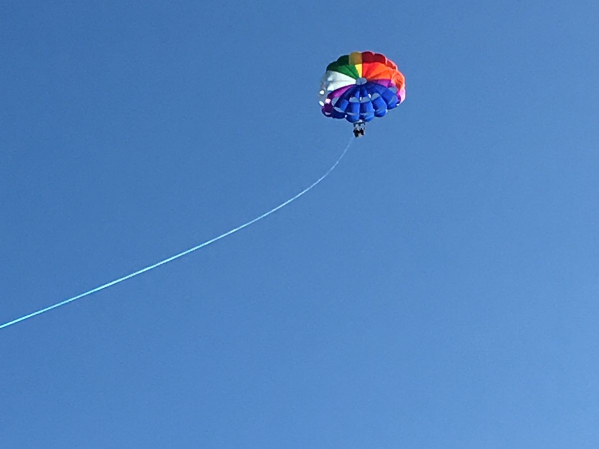 初めてのパラセイリングで尚且つ英語ガイドのツアーに参加しました(当日予約表をみたら英語ガイドとなっていてビックリ)ガイドも参加者も日本人は一人もいなかったけど、送迎車の人は少しだけ日本語できて面白い人、ツアーガイドは全く日本語通じないけど盛り上げてくれてかなりいい人、とにかく初めてのパラセイリングめちゃくちゃ緊張したけど、ジェットコースターが少し苦手ですが、全く違う感覚でした!怖かったので高さ90にしてしまいましたが、飛んでしまえば全く高さ気にならないです!港から船のっている時間も10分〜15分程度で1組目のパラセイリングが始まり飛んでる時間も5分程度、自分合わせて4組いましたがあっという間に終わり船酔いも全くなかったです!