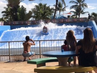 午前中はいろんなスライダーなどのアトラクションで楽しみましたが午後は人工の波でボードに乗るアトラクションにはまりました。オプションですがこの日は5ドルのキャンペーンで乗り放題。かなり楽しめました。また次回も参加します!