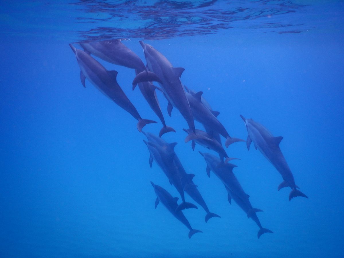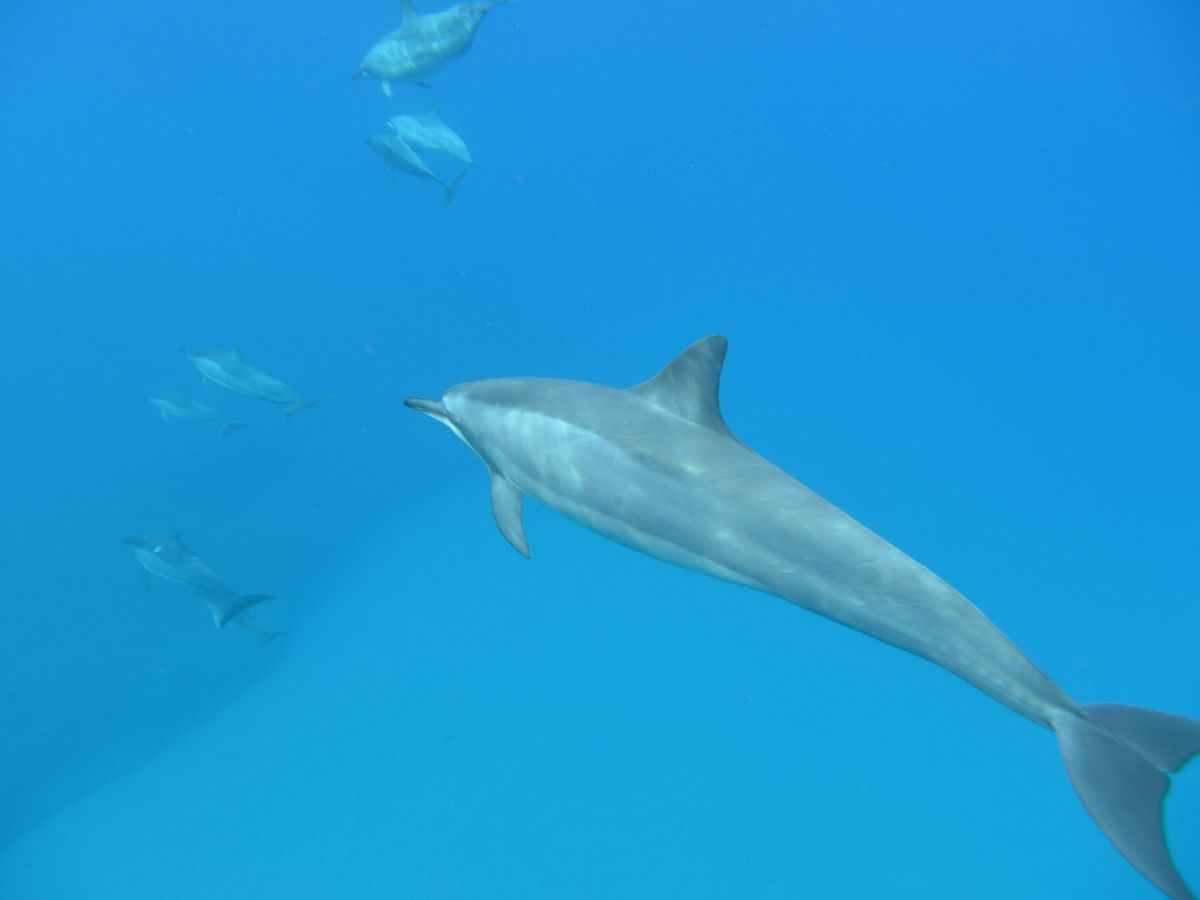 今回、お天気・海のコンディションにも恵まれ、比較的浅瀬の日の差す明るめの海の中でイルカの群れと泳げたので最高でした。