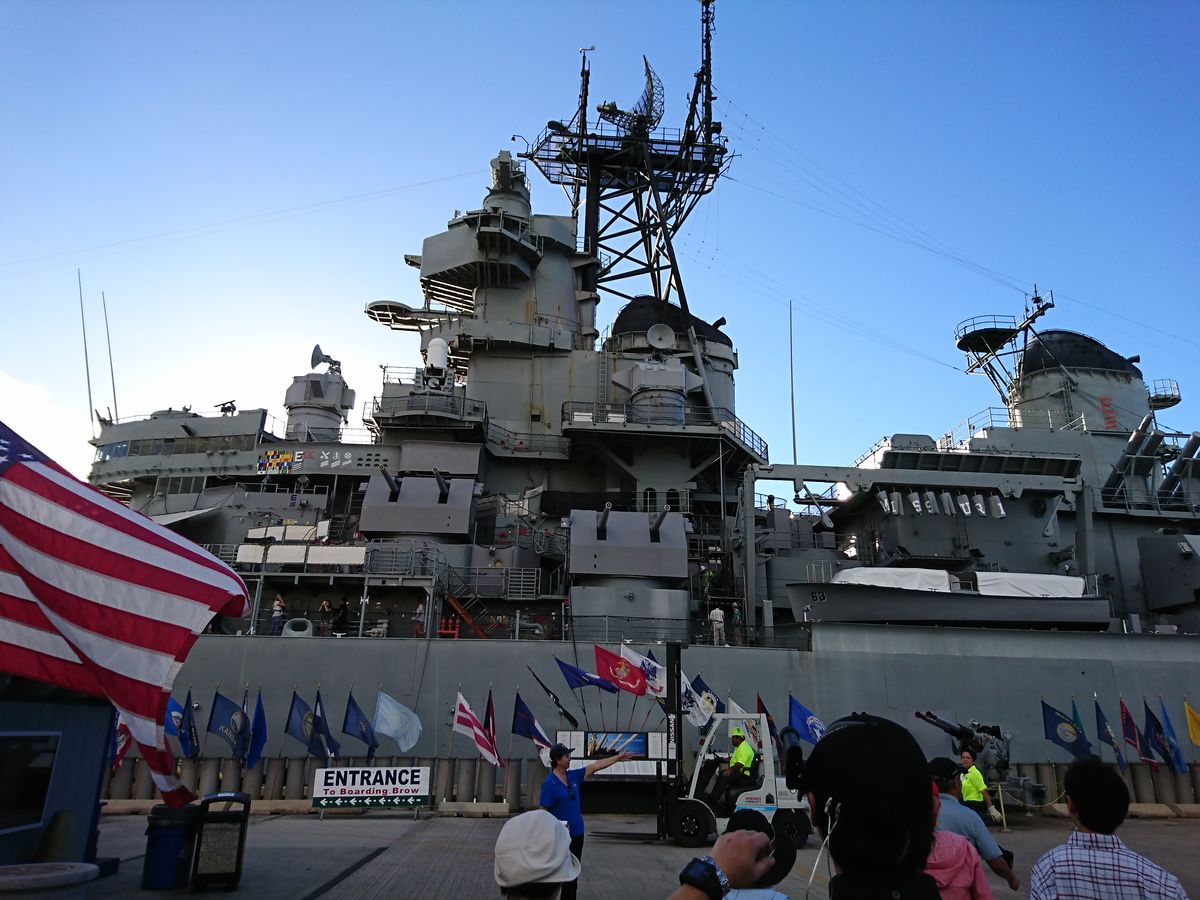 オバマ大統領と安倍総理が前日に来場されたため、この日は朝7時にゲートの到着。すでに長蛇の列でした。8時に開場しガイドさんにいただいたアリゾナ入場の時間は14時。このすぐ後には入場できない状態となっておりました。今回戦艦ミズーリ、とアリゾナへ行きました。どんな思想でも構いません。日本人は一度は見に行った方が良いと思います。